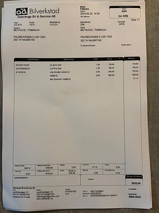Fordonets historik - 14 händelser finns registrerade