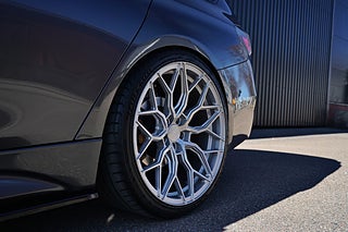 Bilen är förutom fälgarna och diverse snygga detaljer utvändigt förgylld med avgassystem ifrån syskonet 335i samt ett eftermarknadsdownpipe, som tillsammans med en anpassad mjukvara för motorn levererar lite extra effekt och ett trevligt motorljud. Original downpipe fås med bilen om man önskar att montera tillbaka det.