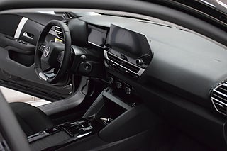 Modern teknik – Stort infotainmentsystem med pekskärm, Apple CarPlay/Android Auto, head-up display och avancerade säkerhetssystem.