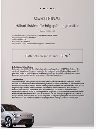 MärkeVOLVOFordonsår2023I trafik2023-12-27MiljöklassELUtsläppsklassELFärgSvart