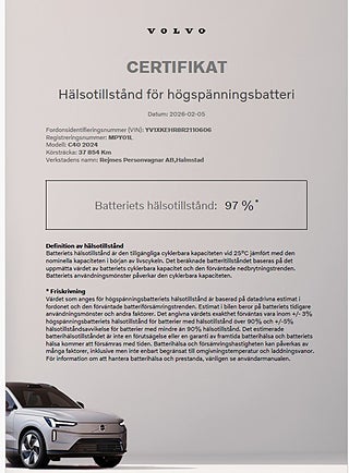 MärkeVOLVOFordonsår2023I trafik2024-01-26MiljöklassELUtsläppsklassELFärgVit