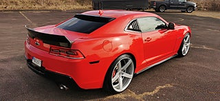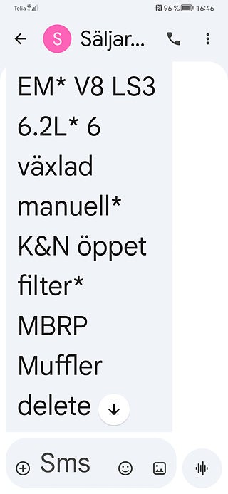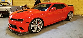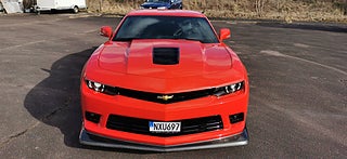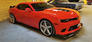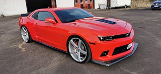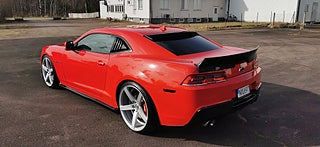 Transport av bilar med täckt släp utföres. Visning enligt ök. Cool Svensk Såld Chevrolet Camaro SS 2015 i fint skick och extra allt. V8 LS3 432Hk och manuell växellåda. Röd lack med svart inredning och recaro sportstolar. Vossen 22 tums fälgar med nya däck och Bremo ok samt Coilovers. 26-03-17 nyservad på 4610mil med olja och filter samt nytt batteri. Se spec på dom sista bilderna. Fungerar som den ska och skön att köra med häftigt ljud. Bes 2025-07-11 nästa Bes 2026-09-30. Även Byte USA bil. Ny rekondad. Finansiering via My Money. Välkommen till Jörgen och Andréns Garage AB