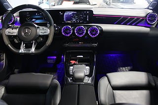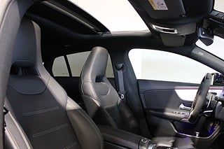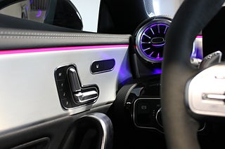 Invändigt möts du av en högteknologisk och exklusiv miljö med Widescreen-display, MBUX Entertainment, touchpad och navigation. Burmester Premium ljudsystem levererar en ljudupplevelse i toppklass, medan panoramaglastak och ambient lighting skapar rätt atmosfär. Läderklädda sportstolar med eljustering och minne, svart innertak samt full keyless förstärker premiumkänslan.
