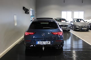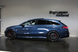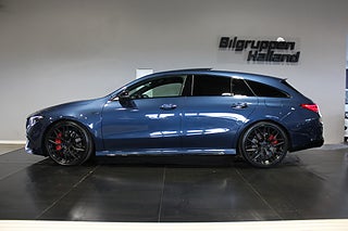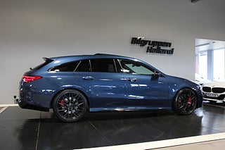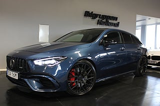 Nu har du möjlighet att förvärva en Svensksåld Mercedes-Benz CLA45 S 4MATIC+ Shooting Brake från 2023 i exklusiva Denim Blue Metallic – en kompromisslös AMG-modell som kombinerar brutal prestanda med premiumkänsla och praktisk Shooting Brake-design.