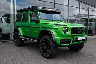 G Manufaktur Green Hell Magno (matt), Nappaklädsel Svart med A-band i limegrön, AMG Smidda alu 22 tum i multiekerdesign lackerade i matt svart, Interiörpaneler i AMG Kolfiber, Optiskt underkörningsskydd i nattsvart magno, Reservhjulshållare Professional, G Manufaktur Biltak lackerat i nattsvart Magno, G Manufaktur kurvhandtag vid innertak i läder, G Manufaktur lastrumsgols i körsbär, G Manufaktur säkerhetsbälten i Rött, MB Stjärnor fram och bak i blankt svart, Mörktonade Blinkers - Strålkastare och Baklyktor, Takräcke Professional inkl stege - Totalhöjd 2255 mm, Ställbart Chassi AMG Ride Control, AMG Bromsok lackerade i Rött, 6 års fri kartuppdatering från första reg-datum, Panelbelysning med 64 färger, 9-växlad AMG Automatväxellåda, Bränsletank med utökad volym 100 L, Stöldskyddspaket Urban Guard Plus, Värmeisolerade och mörktonade rutor, Multibeam LED-strålkastare, AMG Performance Ratt i Svart Nappa, Elektrisk taklucka i glasutförande, Burmester Surround-Soundsystem. Kvarvarande Nybilsgarantier.