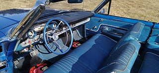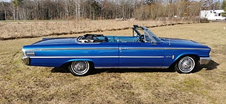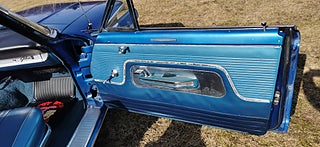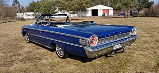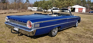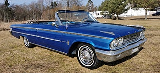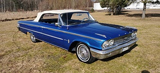 Transport av bilar med täckt släp utföres. Visning enligt ök. Ford Galaxie 500 Cab 1963 i fint bruksskick. V8 352 och aut. Styr och Bromsservo. Rostlagad för några år sedan, rak och fin kaross. Nyare Blåmetalic lack i fint skick med original inredning. Ny vit cab i gott skick. Original fälgar med bra däck. Ny tank och förgasare. Skada på förarsäte och skador på kofångar krom. Fungerar som den ska och skön att köra. Bes och skattebefriad. Även Byte USA bil. Ny rekondad. Finansiering via My Money. Välkommen till Jörgen och Andréns Garage AB