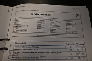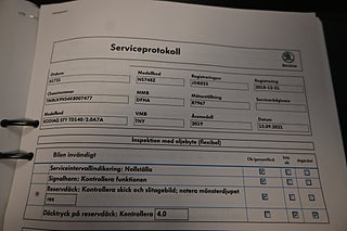 Fordonets historik - 15 händelser finns registrerade