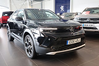 Bi Color Black; Däckreparationssats; 6 st högtalare; Alcantara klädsel, Jet Black; Aluminium sportpedaler; Automatisk avbländbar innerbackspegel; Dekorlist exteriört, Jet Black; Mittkonsol med armstöd Inkl. USB-port & mugghållare fram; Svart kontrasttak; Ultimate dekor i instrumentpanel, uppvärmda elektriskt infällbara & justerbara; Ytterbackspeglar, uppvärmda elektriskt justerbara & manuellt infällbara; ABS bromsar (15tum skivor fram + 14tum skivor bak); Valbart Sportmode; Adaptiv farthållare; Aktiv filhållningsassistans; Autobroms och varningssensor med fotgängar- & cyklistskydd; Bältespåminnare bak; Bältespåminnare fram; Elektrisk parkeringsbroms; ISOFIX-fästen för barnstolar på ytterplatserna bak; Kollisionsvarning fram, all hastighet; Krockkuddar fram, sidokrockkuddar och krockgardiner; LED blinkers fram&bak; LED Dimljus; LED DRL (Varselljus); LED Lampor bak; LED Strålkastare; Nyckelfritt Open & Start system; Trafikskyltsavläsning; Tröttshetsvarnare (Driver Attention Warning); Apple CarPlay & Android Auto; DAB, DAB+ & DMB audio module; Multimedia Pro: 10tum pekskärm & 12tum digital-insturmentpanel Opel Pure Panel; Backkamera 180 °; Dödavinkelnvarnare; Parkeringsradar fram & bak; Regnsensor; Baksäte fällbart 60:40; Uppvärmda framsäten; Elektronisk klimatanläggning; Uppvärmd ratt; Elmanövrerade fönsterhissar fram och bak; Mörktonade bakrutor.