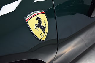 Smakfull specifikation i den gröna Verde British Racing från Ferraris Historical Colours tillsammans med bruna Iroko Alcantara klädseln.