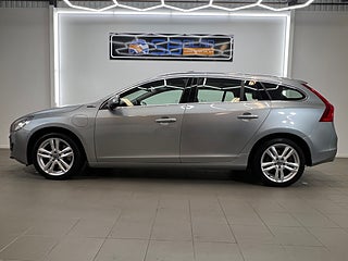 Volvo V60 D6 Plug-in Hybrid AWD i en snygg silverfärg med starka 283 hk som kombinerar kraft, fyrhjulsdrift och låg bränsleförbrukning tack vare plug-in tekniken. Utrustningen är mycket generös: elstolar fram med minne för föraren, helskinnsinredning och stolsvärme både fram och bak för extra komfort. Takluckan ger en ljus och luftig känsla i kupén och med keyless behöver du inte ta fram nyckeln. Säkerheten är väl omhändertagen med kollisionsvarnare, lane assist, parkeringssensorer både fram och bak samt backkamera som gör parkering enkel. Navi visar vägen och regnsensor ser till att du alltid har klar sikt.