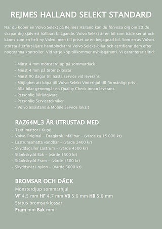 MärkeVOLVOFordonsår2024I trafik2024-03-08UtsläppsklassELHYBRIDFärgVitMotorstorlek1 969 cc