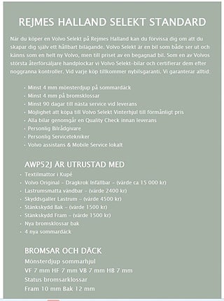- Volvo Selekt garanti 24mån/3000mil