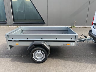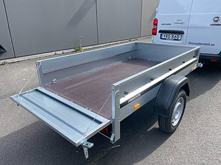 Smidig fritidsvagn som tar liten plats. Perfekt för trädgårdsavfall och enklare transporter. Öppningsbar bakläm för enkel lastning. Skattebefriad, obromsad vagn som man får köra i 80km/h med