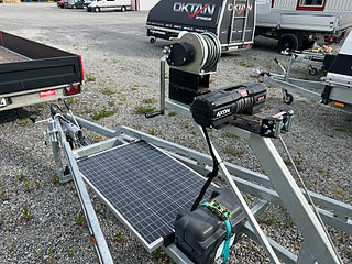 Tiki-Trailer BP3500-DRB/XL DEMO. Utfört 4-5 sjösättningar och rullat max 30 mil. Extrautrustad med. Warn AXON 55-S 2495KG med styrning via app. Yuasa batteri. Laddning via solcell. Original vinsch sitter också monterad. Avdragbar moms. DOC50R.