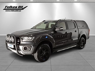 Ford Ranger Wildtrack Dubbelhytt 2.0 EcoBlue Bi-Turbo 4x4 SelectShift, LÅG SKATT - 5 414 kr/år, Dragkrok, Vinterhjul dubb ingår, 4 st Frontbåge svart med LED-extraljus, Flakkåpa med öppningsbara sidoluckor, ,AmbientLight LED belysning, Adaptiv farthållare, Färddator, Skyltigenkänning, Regnsensor, Keyless nyckelfri start, Start-/stoppfunktion, Parkeringssensorer fram, backkamera, Eluppvärmda sidospeglar, Eluppvärmd vindruta, Läderklädd multifunktionsratt, Halvläderklädsel, Flakinklädnad i plast, 8" multimediadisplay med touch, 6 st högtalare, Android Auto, Apple Carplay, USB-uttag, 12V-UTTAG, Rails, ISOFIX-fästen bak, OBS bilen är privatägd - ej avdragbar moms,