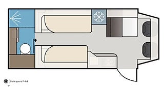 Planlösningen är Långbäddar och har totalt 4 antal bäddar