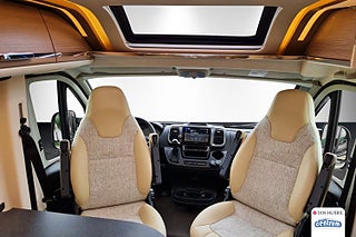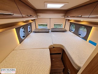 8G-hydraulisk automatväxel, Chassi-plus-paket Fiat (f40/f35 tillsammans automatisk), LED-ytterbelysning inkl. dropplist, förar-/passagerarsida vardera 2x, Eluttagspaket: 3x USB-uttag/2x 230 V-uttag, Borttagbar textilmatta i förarhytten, Delvis skinn Elfenben - skinn-tygkombination, Truma Combi 6 E (gasol-/eldrift), Mediacenter Pioneer 9 inkl. navigering, funktionen navigering husbilar och DAB+, Förberedelse backkamera (för analog kamera med enkelobjektiv), Extra skena för bord utomhus, Extra bord för utomhusskena, Sovrumsdesign och accessoarer: Prydnadskuddar, Cherry Classic interior design, Premium Plåtis från Malibu, Stor 138 l kyl med frysfack, Keyless start inkl start/stop funktion, Säljes kontant alt via Nordea Finans