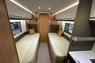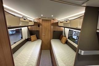 Låga enkelsängar långbädd, Stor kyl separat frysfack, Thule cykelställ höj/sänk, TV-antenn runtomstrålande