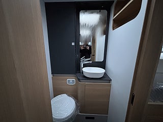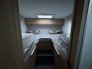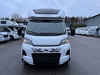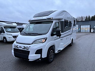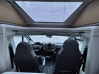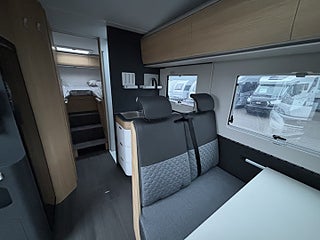 Lounge Pack 1 (Automatisk AC, 7" Full digital instrumentpanel), Advance Safety Pack (Safety Pack, DC/DC Converter (laddningsbooster), Elektrisk tömning spillvattentank, Entrédörr med fönster och myggnät och, Förberedd med fästen för barnstol (Isofix), Förberedelse för lufkonditionering, parabolantenn och solpane Gasfilter Truma, Gasolutrymme med plats för 2x11 kg, Plisségardin vid vindruta och sidorutor i bildel, Textilpaket (kuddar och sängöverdrag), Isolerad och uppvärmd spillvattentank, Airbag förare och passagerare, Manuell luftkonditionering, Nedlackade stötfångare i bilens färg