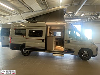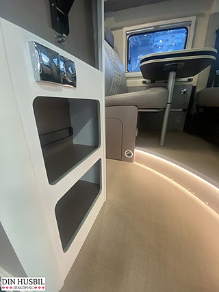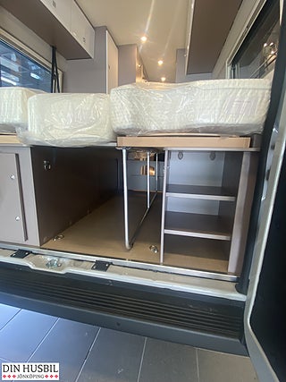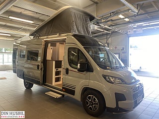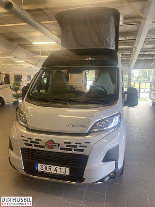 Fiat Ducato Multijet 3 - 2.2l - 140 hk - Euro 6E - automatisk växellåda, Speciallackering "Expedition grå", Förberedelse för dragkrok, Elektriskt infällbara sidospeglar + parkeringssensorer, Karmfönster inkl. mörkläggningsgardin (höger sida bak), Karmfönster i bakre dörrar (båda sidor), lackerat i bilens färg (Inkl. takfönster 50 x 70 cm med panoramafunktion, samt dim-bar LED- belysning, svanhalslampor med USB uttag, Högtalare i bodel och sovrum, Safety Paket Innehåll:Automatisk nedbromsning till stopp efter kollisionFilhållningsassistansRegn- och ljussensorerVägmärkesigenkänningAutomatisk helljusavbländningTrötthetsvarnareIntelligent hastighetsassistent, Attractive paketInnehåll:Unik "Attractive"-dekorSkyddsrör i krom för spoilerBrodyr "Attractive", Förarsäte och främre passagerarsäte i inredningens tyg, Induktionsladdning för mobiltelefon, Krockkudde på förarplats och passagerarplats, Ytterbackspeglar uppvärmda och elektriskt justerbara, Elektriskt manövrerat fotsteg, 2 x längsmonterade enkelsängar (möjligt att förvandla till dubbelsäng), Isofix-fäste för två bilbarnstolar