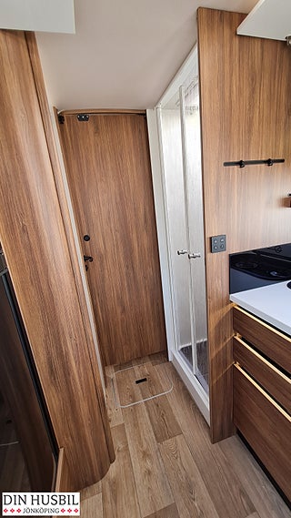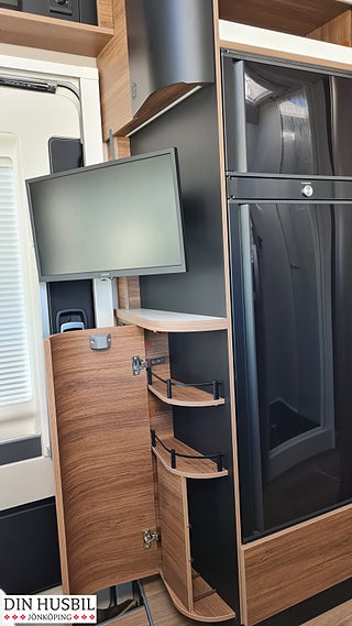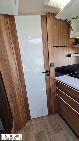 Al-Ko® manuella stödben bak (passar inte med HY4), 22" FULL HD-skärm i salongen, Automatisk satellitantenn med två huvuden 85 cm, ALDE vattenburen dieselvärme, Eldriven mörkläggning framruta, Magnetventiltömning av spillvatten, vattenslangvinda påfyllning färskvatten, Dörr mellan sov och köksplats