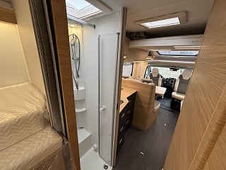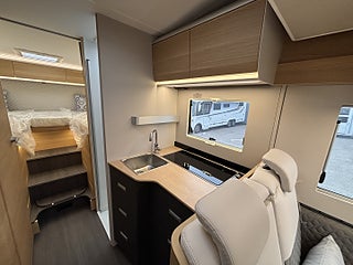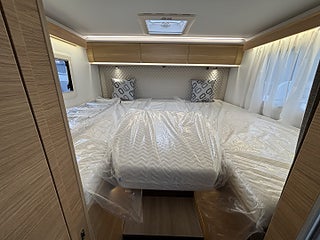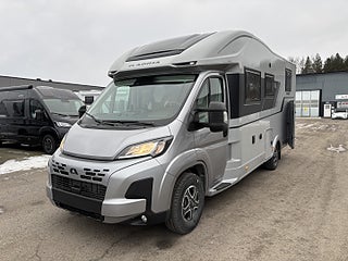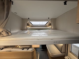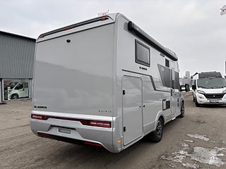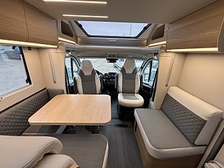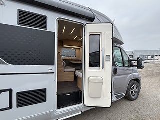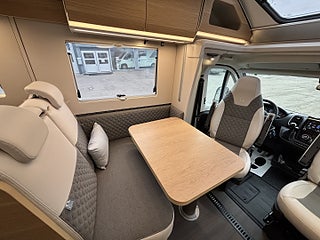 Hjuldrift: Framhjulsdrift, Isolerad och uppvärmd spillvattentank, DC/DC Converter (laddningsbooster), Dekorativa kuddar 60Y Edition, Elektrisk nedsänkbar säng, Elektrisk tömning spillvattentank, Förberedelse för luftkonditionering, parabolantenn och solpanel, Förberedd med fästen för isofix, Gasolutrymme med plats för 2x11 kg, Panoramafönster i förarhytt, Plisségardin vid vindruta och sidorutor, Airbag förare och passagerare, Artense Grey metallic med silverkaross, Dekor instrumentpanel silver, Intelligent hastighetsassistans, Manuell luftkonditionering, Nedlackade stötfångare i bilens färg, Regn- och skymningssensor, Zenec Multimedia 9" (inkl. backkamera)
