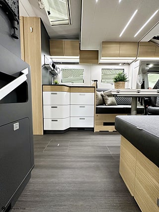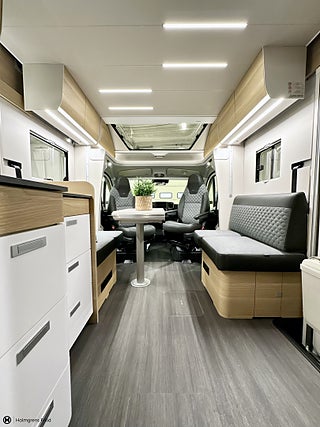 Karossen är av typen Husbil Halvintegrerad med takbädd och 749 cm lång
