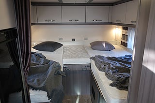 Längst bak långbäddar som kan bäddas över bilens bredd,