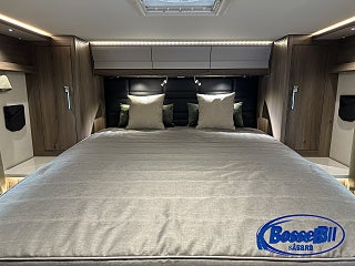 Sovrum bak med härlig bred queenbed därtill garderober och skåp samt lådor