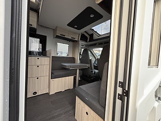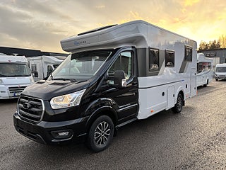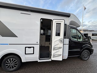Hjuldrift: Framhjulsdrift, Pluspaket Ford (Alu. Fälgar, Förarhytt i Svart metallic, Mörkläggningsjalusi fram och sidorutor, Isolerad och uppvärmd spillvattentank, Panoramafönster i förarhytt, Dörr med fönster och myggnätsdörr, Elektrisk tömning spillvattentank, DC/DC omvandlare (laddningsbooster), Förberedd med fästen för barnstol (Isofix), Förberedelse för luftkonditionering, 2.0EcoBlue HD 165HP (121kW) 41H, Adaptiv farthållare med filcentrering och, Airbag förare och passagerare, Automatisk luftkonditionering, Automatisk vindrutetorkare, Camper Premium Pack (High level strål, stötfångare i bilens färg), Filhållningsassistent (Lane Keeping Aid), Intelligent hastighetsassistans (Intelligent, Krockvarningssystem (-Pre-Collision Assist)-, Skyltavläsning (Speed Sign Recognition), SYNC IV Multimedia system 12", Varning för fel körriktning (Wrong Way Alert)