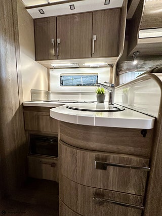 Karossen är av typen Husbil Halvintegrerad med takbädd och 774 cm lång