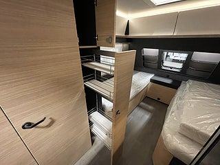 Totalviktshöjning enkelaxel. OBS! Modellberoende se datablad, Utdragbar sängbreddare mellan enkelsängar. OBS! Modellberoende se datablad, ALDE Compact 3020 HE från modell 545. (lastlucka utgår), GEBO Antennmast med Koaxialkabel, 3-ledat TV-fäste inkl. kabeldragning, Förberedd för takmonterad AC/klima, Gasolugn Thetford 36 lit. Belysning, elektrisk tändning. Maxia modeller