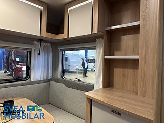 Modellår: 2025, Värmesystem: Truma - luftburen fläktvärme, Truma - luftburen fläktvärme, Fönster med mörkläggning/myggnät, Fabriksgaranti