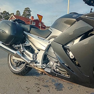 Kanonfin lågmilad YAMAHA FJR1300 ABS. Bortsett från sidoväskor inkluderar toppbox & tankväska. Handtagsvärme finns.