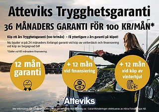 Välj vår Trygghetsgaranti – 6, 12, 24 eller 36 månader (gäller upp till 20 000 mil / 10 år).