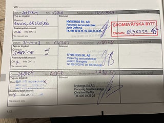 Fordonets historik - 18 händelser finns registrerade