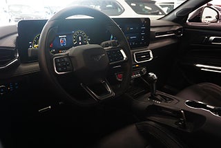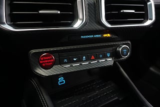 Rödlackerade bromsok, Krockkuddar på förar- och passagerarplats fram, Mittkonsoll med armstöd och förvaring, 6-vägs elmanövr. Ventilerat & uppvärmt förarsäte inkl elmanövr. svanskstöd, 4-vägs elmanövrerat ventilerat & uppvärmt passagerarsäte, Intelligent Adaptiv Farthållare, Svart läder / vinylklädsel med gråa sömmar, Lane Keeping Aid och Lane Departure Warning, Radio/DAB med SYNC 4 och 13, Parkeringssensorer bak AppleCarplay/Android Auto, Pre Colllision Assist (autobroms), B&O Premium ljudsystem - 12 högtalare inkl Forward Collision Warning, Follow Distance Indicaton, FordPass Connect Advanced Emergency Braking, Uppvärmbar läderklädd ratt, Cross Traffic Brake Assist, Valbara körlägen (normal/sport/slippery/track/drag/custom), Tvåzons aut klimatanläggning, 4" digitalt instrumenthus, Trådlös mobilladdningsplatta, Drivlina & Teknik Exteriör, Elektrisk servostyrning (EPAS), Aut avbländbar backspegel, LED-strålkastare med LED-varselljus, ellinfällbara ytterbackspeglar, Track Apps med markbelysning, AdvanceTrac® med Electronic Stability Control® (ESC), Vindrutetorkare med regnsensor, Launch Control (endast manuell), inkl: - Brembo bromsar - K-brace - Differentialbroms - Unik chassiinställning & unik tuning på ESC