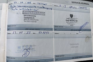 Fordonets historik - 20 händelser finns registrerade