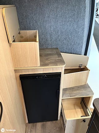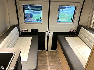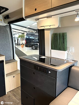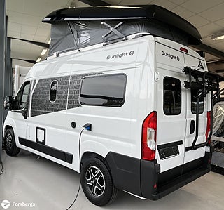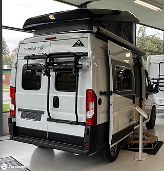 Hjuldrift: Framhjulsdrift, Trappa till säng i uppfällbart tak!, Märke chassi: Fiat Ducato, Fiat Ducato 3.500 kg | 2.2 | 103 kW | 140 HK Euro 6 | 8-steg automatisk växellåda, Isolerad och uppvärmad avlopstank, Cykelställ till 2 cyklar (svart), Skjutbara mörkläggningsgardiner, Förberedelse för backkamera, Safety paket inkl. ACC - Bromsassistent med fotgängar- och cyklistigenkänning, Varningsystem för avåkning, Intelligent hastighetsassistent, Adaptiv farthållare >30 km/h, Sunlight Multimediapaket 9" ink Backkamera (Apple CarPlay & Android Auto) OBS ej Multifunkt.ratt, Sovtak inkl. panoramataklucka, Basic paket Vanlife - Duschutrustning | Fönster i duschutrymme | Klädstång i våtrummet | Bred ingångststeg | Avtagbar textilförvaring för tvätt, Paket med lackerade stötfångare - Kofångare framme lackerad i fordonets färg | Skid Plate i svart | Dimljus, Paket med aluminiumfälgar bicolor - Ratt & växelspaksknopp i läderutförande | Luftutlopp med silverapplikationer (Techno Trim) | 16" aluminiumfälgar bicolor, Start & Stop funktion inkl. booster, Klimatanläggning i förarhytt (manuell), Däck M+S* Camping (snöflingor), Varselljus integrerad i strålkastare, Strålkastare med svart ram, ESC (electronic stability control) including ASR (anti-skid control), hill holder (hill start assist), trailer stability control and PCB (post-collision braking), Traction+ med Hill Descent, Ytterbackspegel (elektrisk och uppvärmd), DAB antenn inbyggd i ytterbackspegel, Radioförberedelse med högtalare, Bodelskontroll inkl. temperaturvisning, Förar-/passagerarstol i samma klädsel som i bodelen med dubbla armstöd (Captain Chair), Förar- och passagerarsäte med svankstöd, Höjd- och lutningsjustering för förar- och passagerarsätet, Tvåglas-fönster med mörkläggningsgardin och myggnät, Båda dörrar bak med fönster (inkl. rullgardin), Förarhytt och bodel åtskilda med värmeisolerande vägg, Rymligt förvaringsutrymme ovanför förarhytten, Fasta trappsteg för säker uppstigning till sovtaket med integrerade förvaringsfack, Dubbel matplats med avtagbart bord, Multi-functional camping table, Ergonomiskt utformade dynor för ökad sittkomfort, Madrasser i hög kvalitet för ökad liggkomfort, Hyllor i dörrer i bak och i skjutdörr, Flexibel ljuslist med individuellt inställbara LED-läslampor, Inbyggda LED-spots i sittgrupp och duschrum, Kraftfullt AGM-bodelsbatteri (95 Ah) inkl. laddare (18 Ah), Kontrollpanel med information om vattennivå och batterikapacitet, Elektrisk laddare för bodels- och startbatteri 12 V / 18 A, Yttre anslutning CEE för 230 V med automatsäkring, Box för gasolflaskor med plats för en 2.75-kilosflaska, Lättåtkomliga och centralt placerade gaskranar, Ergonomiskt utformat kök med 3 lådor med Servo-Soft, Uppfällbar förlängning för köksbänkskiva, 2-lågig gasspis med elektrisk tändning och glaskåpa, Fällbart tvättställ (Badrum), Stort skåp med hyllor (Badrum)