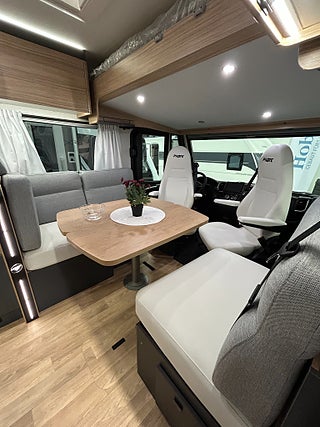 2 l motor ? 180 hk ? Automatlåda ? chassi 4T4 eller 4T5 Al-Ko®, 9-TUMSPAKET: 9-tums Pioneer bilradio, Apple Carplay/Android Auto, högtalare i hytt och boendedel, värmeväxlare och pump för förvärmning av motor, 210 Ah litiumbatteri och två 100 W TOPCon monokristallina solpaneler, räcken och 230 V-uttag i lastutrymmet, Duschmunstycke med kallt/varmt vatten i det bakre lastutrymmet, Utvändig utdragbar förvaringslåda, Inbyggd soptunna och tillbehör för indelning i fack, på Fiat-chassi (måste beställas med 16-tums lättmetallfälgar, 180 hk-motor och automatlåda), Airbag förare & passagerare, manöverpanel experience 2.0, Gasolkoffert för 2 st P11, Polyesterskikt under golv, Dubbelglasfönster i bodelen med aluminiumkarm, mörkläggningsgardin och myggnät. automatiskt kylskåp, 230v uttag och dubbelt USB i sovrum