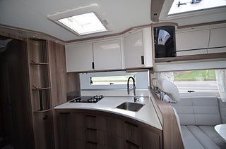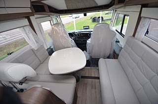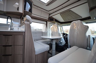 Active Lane Keeping Assist, Airbag på passagerarplats, Aluminiumutsida väggar och tak, Batterikapacitet AGM 92 Ah, Distronic (adaptiv farthållare ? avstånd till framförvarande fordon), DRL daytime running light, Elektrisk parkeringsbroms, ESP Antisladd och antispinnsystem, Förar- och passagerarstol med dubbla armstöd, Förar- och passagerarstol med höjdjustering, Förar- och passagerarstol med svängbart underrede, Lackerade stötfångare fram, LED belysning halv/helljus, Mercedes-Benz ServiceCare Complete, Motor: Mercedes-Benz 170 hk (FWD), Regn- och skymningssensor, Växellåda 9 vxl Automat ? 9G-tronic, Ytterbackspeglar elektriska (justerbara och uppvärmda), Aircondition bodel ? Fresh Jet FJX4 2200, Alde Compact 3030 centralvärme, Automatiskt golvvärmesystem AGS II Pro, Bränslevärmare motorkrets, Extra värmepaket i sidohurtsen kopplat till golvvärmesystemet, Konvektorer vid insteg till dörr, Termogardin nedtill i hytten, Vattenburen golvvärme i hytt med konvektorer i insteg, Vinteranpassat vattensystem, Värmepaket vid passagerarstol, Centrallås utvändiga luckor, Ecoprim-isolering i väggar, Stadig och fuktsäker kaross, Tonade dubbelfönster ? D-Lux grå metallic, uppvärmt skidfack med belysning samt fackverk från sidan, Antislip-beklädnad undersida dynor, Arbetsbänk med hybridspis (2 gasolplattor och en induktionsplatta), Avfallshink med källsortering, Belysning under arbetsbänksskivan i köket, Belysningsramper överskåp, Bodelsdörr Premium ? HartaLux, Dusch med duschvikväggar alt. dusch i separat duschkabin, Elektrisk tömning av färskvattentank (även manuell funktion), Elektrisk tömning av spillvattentank (även manuell funktion), Engreppsblandare i kök och toalett, Ergonomiskt utformade sittdynor i Premium Foam, Exklusiva luckor överskåp, Förar- och passagerarstol med KABEs egen fasta klädsel, Högkvalitativa snickerier, Inredning med optimal luftcirkulation, Kylskåp med köldfack ? Thetford, Köksfläkt med motor och fettfilter, Mörkläggningsgardiner (även bildel), Nedsänkbar dubbelsäng över dinette, Optimerad kylskåpsventilation, Optimerat ventilationssystem, Porslinsskåpsluckor Sabbia High Gloss, Sidogardinuppsättning med ljuslist, Spiralmadrass och bäddmadrass (tunnare bäddmadrass i LGB-modeller), Spis med elektrisk tändning, Steglös rullgardin och myggnät i alla öppningsbara fönster, i mockaimitation med belysning, Toalettrum med tvättställ, skåp och bänkskiva i laminatet Light Concrete, Upphängningslist med två krokar i köket, Ventilerad taklucka Mini Heki med myggnät och mörkläggningsgardin, Ventilerade takluckor Heki II med myggnät och mörkläggningsgardin, Vridbar spoltoalett med keramikskål, fast installerad med utvändig tömning, Vridplatta / utdragsskena gasol, Välj mellan 2 dynklädslar i skinn eller en i Artificiellt läder, Välj mellan 4 dynklädslar, 12V/230V laddning taksäng, KABE Smart D servicecenter med touchscreenpanel som styr samtliga funktioner, inverter och dubbla batterier, Indirekt belysning vid överskåp, MBUX (inklusive backkamera), Premium Sound System med DAB, Router (exkl. abonnemang), TV-antenn med förstärkare, Utvändigt 230 V / 12 V / TV-uttag / intag för centralantenn, Elektrisk låsning arbetsbänk, Inbrottslarm med skalskydd, KABE Smart Level (Gasolnivåsensor, Kraschsensor på gasolsystemet, Rörelsesensor utebelysning, Slangbrottsventil på gasolsystemet