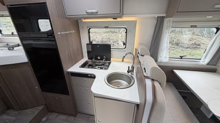 Märke chassi: Fiat Ducato 35 L, Fiat Ducato 3.500 kg 2.2 Multijet - 103 kW / 140 HK Euro VI E - 9-steg automatisk växellåda(Endast för I447 / I449 / T338 / T447 / T448 / T457 / T459), Ombädding enkelbädd tilll dubbelsäng(INTE möjlig för I449 / T135 / T459), Nedfällbar säng med Clima-Plux element(INTE möjlig för T135) (Standard för I338 / I447 / I449), 12 V TV-förberedelse inkl. TV-fäste, Golvuppvärmning elektrisk, Combi 6 E värme (med elvärme)