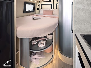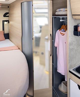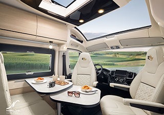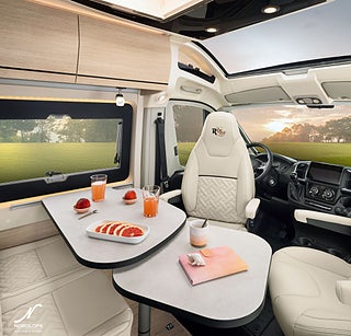 Hjuldrift: Framhjulsdrift, Märke chassi: Fiat Ducato, LOUNGE PACK : Automatisk AC i hytt, induktivladdning smartphone, SAFETY + PACK: Adaptiv farthållare >30 km/h, autobroms med fotgängardetektion, intelligent fartassistans, KEYLESS PACK: Nyckellös start och låsning/upplåsning, 3.5T (från 140 hk manuell 3, Elektrisk parkeringsbroms, Kompressorkyl med frysfack, Noumea 65 års textildesign
