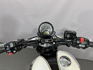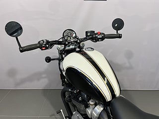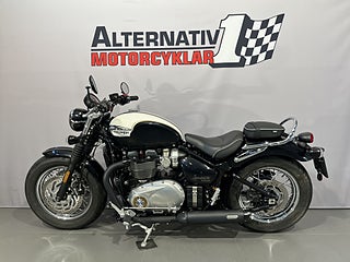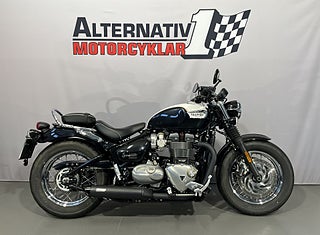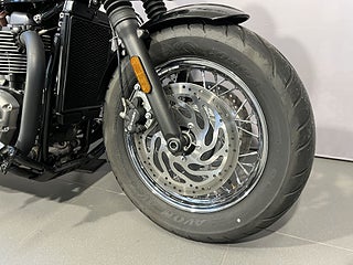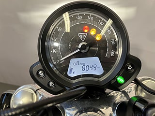 Triumph Speedmaster 1200 från 2018 med 805 mil på mätaren. Speedmaster1200 är i praktiken en tvåsitsig Bobber Black med grövre gaffel och större tank (12 liter). Tvåtonslack på tanken med gulddekor. Extrautrustad med : Vance&Hines i svart. Lågt styre. Styrändsbackspeglar. Originaldelar finns kvar (ljuddämpare. styre.) och även pakethållare med ryggstöd som ej är monterat. Standardutrustad med bla: Farthållare. LED-belysning. Färddator. Antispinn (går att stänga av). Road- och Rain-körläge mm. Den perfekta hojen för dig som vill ha en lika cool hoj som Bobber men med två sittplatser. Senast servad vid 556 mil - kommer att servas inom kort. Besiktigad till september 2026. Extranycklar och manualer.#Speedmaster #Bonneville #Speed master #Modernclassic #Modern classic #Classic #1200 #ZKN164 #ZKN #164