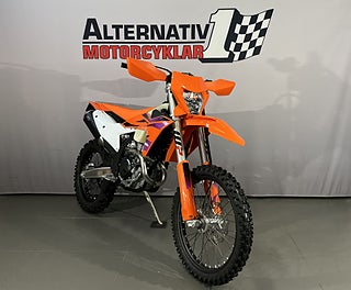 KTM EXC-F 350. Årsmodell 2024 nu i butik. Utrustad med elstart och insprutning. Klassledande effekt med ett lätthanterligt chassie och fullt justerbar fjädring. Genomskinlig tank. Landsvägsdelar ingår. #KTM #EXC #EXC-F #350 #EXC-F 350 #EXCF #350 #Fyrtakt #Enduro
