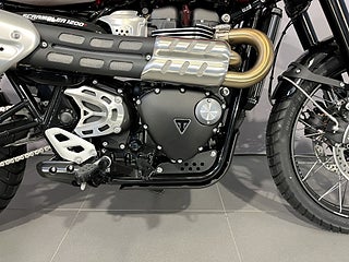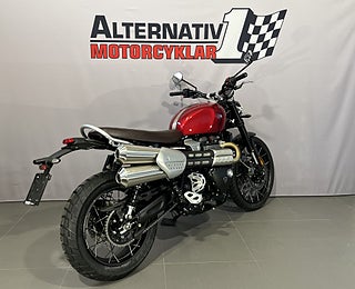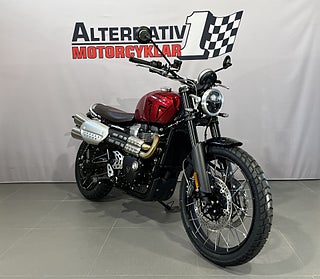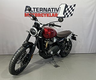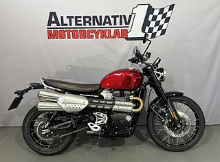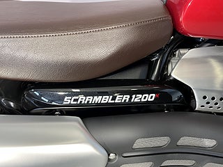 Triumphs coola stora Scrambler 1200 X här i Carnival Red. Här kombinerar Triumph Bonnevilles 1200 cc parallelltwin med modern design och förstklassig förarkomfort utan att glömma Triumphs genuina DNA både on-road och off-road. Scrambler 1200 X har en sitthöjd på 820mm vilket är 20mm lägre än gamla XC modellen och hela 50mm lägre än XE modellen. En lägre sadel finns som tillbehör som är 25mm lägre vilket sänker sitthöjden till 795mm. 6-växlad med 90 hk och hela 1600 mils service-intervaller. TFT-skärm med möjlighet till bluetooth-koppling. 5 körlägen. ABS. TC. LED-belysning. USB-laddning. Triumph har ca 70 tillbehör till Scrambler 1200 vilket gör att du kan sätta personlig prägel på din hoj. #Triumph #Scrambler #X #Scrambler X #1200 #Scrambler 1200 #Scrambler1200 #Modern Classic #off-road #Äventyrshoj #Grushoj #Grusvägshoj #BLL92P #BLL #92P