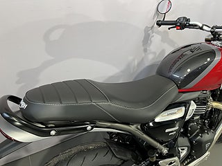 Triumph Speed 400 2026. Klassisk stil. Modern kraft. Full kontroll. Välkommen till en ny era av lättviktsprestanda. Triumph Speed 400 kombinerar ikonisk design med avancerad teknik. Perfekt för både nya förare och erfarna entusiaster som söker något smidigt och snyggt. 40 hk och 37, 5 Nm med pigg respons i varje växel. 6-växlad låda med slirkoppling som ger mjuk och trygg körning i alla lägen. Låg vikt (179 kg) och sadelhöjd på 803 mm och därmed tillgänglig för alla. Bosch ABS & traction control. LED-belysning runt om. Showa Big Piston-gaffel & gasstötdämpare ger följsam fjädring för stad och landsväg. 13-liters tank och 16 000 km serviceintervall betyder mer körning - mindre verkstad. #Triumph #Speed 400 #Speed400 #400 #nakenhoj #naked #encylindrig #A2 #JBW74B #JBW #74B