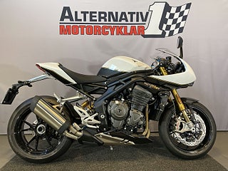 SÄNKT PRIS 177.000kr. Ord pris 219.000kr. Nya Speed Triple 1200 RR är den mest kraftfulla, dynamiska och tekniskt avancerade Speed Triple någonsin! Helt ny i alla dimensioner och revolutionerande när det gäller : Speed Triple-kraft. Prestanda. Hanterbarhet. Teknik. Motorn på 1160 cc och 180 hk levererar 125 Nm vid 9000 varv vilket ger dig en enastående upplevelse. Lättare och lägre samt styvare än sin föregångare förmedlar den här cykeln ren körglädje både på väg och på bana. Öhlins fjädring och Brembo bromsar. Optimerad kurv-ABS och avstängbar optimerad kurvtagningskontroll (med IMU). Framhjulslyftkontroll. Farthållare. 5 tums TFT-skärm i fullfärg. 5 körlägen inkl. Track. Växelassistent upp/ner. LED-belysning. Nyckellös tändning. Litiumbatteri. 1600 mil/12 mån serviceintervall. #Triumph #RR #Speed Triple #Speed #Triple #Triple RR #Speed RR #Triumph 1200 #1200cc #Sport #SpeedTripleRR #Speed Triple RR #Track #Banhoj #Bana #Speedtriple1200 #speedtriple 1200 #OFO935 #OFO #935