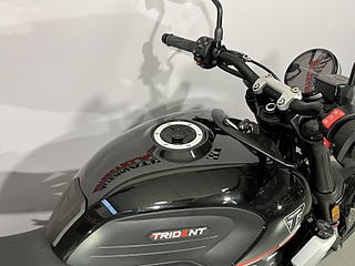 Triumph Trident 660 från 2023 med låga 97 mil på mätaren. Endast en brukare sedan ny och uttagen i trafik maj 2024. Motorcykeln som lovordades av alla vid pressvisning/testkörning. Varför välja när det går att få allt! Snygg. Sportig. Bekväm och smidig. Inget annat än ren körglädje. Allt till ett otroligt konkurrenskraftigt pris. 81 hk och 64 Nm i 189 kg fulltankad motorcykel. Är standardutrustad med två körlägen och justerbar traction-control. Tanken rymmer 14 liter. Förmedlingsuppdrag så inget inbyte på denna hojen. Senast servad juni 2025 vid 93 mil. Besiktigad till juni 2028. Extranyckel och manualer. #Triumph #Triumph Trident #Trident #Trident 660 #Trident660 #660 #A2 #Övningskörning #MCD75C #MCD #75C