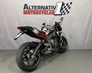 Triumph Street Triple RS från 2022 med 922 mil på mätaren och en brukare sedan ny. Sportig nakenhoj med trecylindrig motor som levererar 123hk i ett mycket lättsvängt chassie. Passar lika bra på favoritvägen som en bandag. Extrautrustad med : Värmehandtag. Tankskydd. Crashpuckar på ramen. Bobbiner. Framaxelskydd. Tail Tidy. Standardutrustad med TFT skärm. Brembobromsar. Öhlinsfjädring bak som är justerbar. Showa USD gaffel fram som är justerbar. DRL. Körlägen. Quickshifter. Cuts. Motorspoiler. Styrändsspeglar. Tractioncontrol. ABS. Senast servad februari 2026 vid 922 mil. Besiktigad till mars 2027. #Triumph #Street #Triple #Street Triple #RS #765 #Street Triple RS #Triple RS #Street RS #Street Triple 765 #Street 765 #Triple 765 #sport #naked #bana #CCZ14D #CCZ #14D